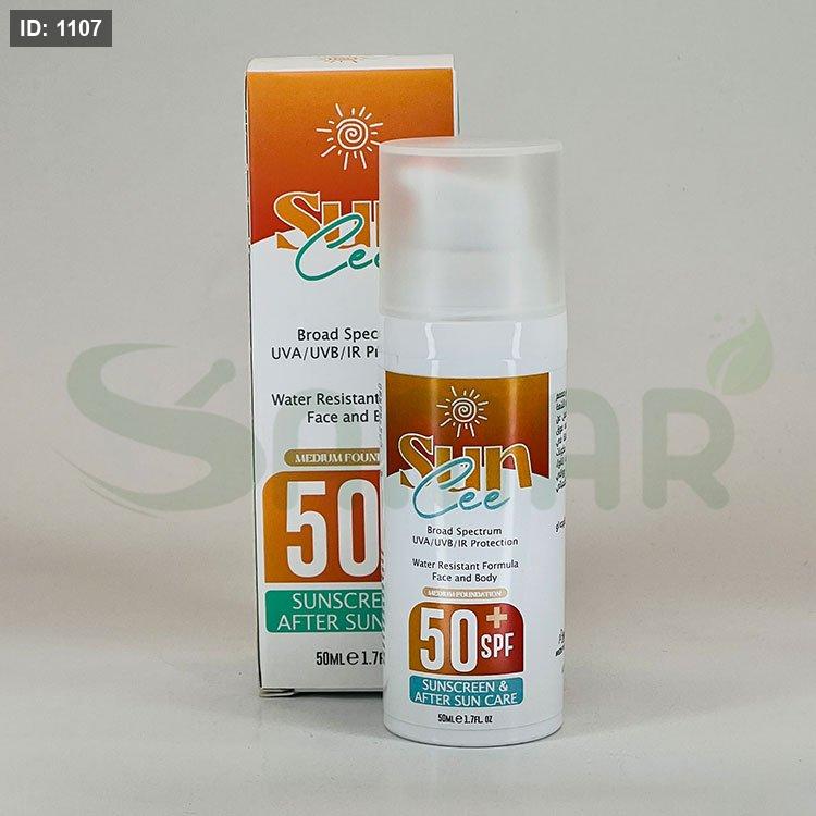 واقيً شمس وتغطية كريم الأساس المتوسطة، مما يوفر حماية من أشعة الشمس مع توحيد لون البشرة.