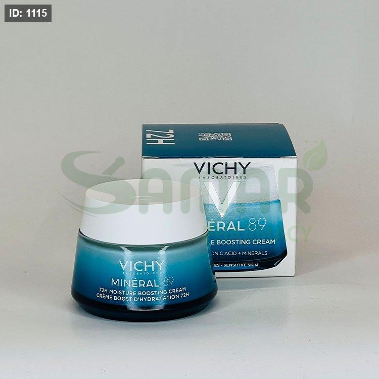 كريم مرطب يعزز ترطيب البشرة لمدة تصل إلى 72 ساعة، يحتوي على 89% من مياه فيشي الحرارية وحمض الهيالورونيك لتقوية حاجز البشرة وترطيبها بعمق.