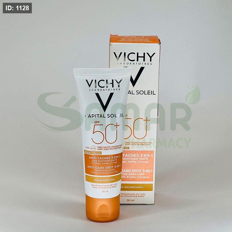 واقي شمس بثلاث فوائد: حماية من أشعة الشمس، تصحيح البقع الداكنة، وتوحيد لون البشرة. يحتوي على مكونات تساعد في تقليل ظهور البقع الداكنة مع توفير حماية عالية.