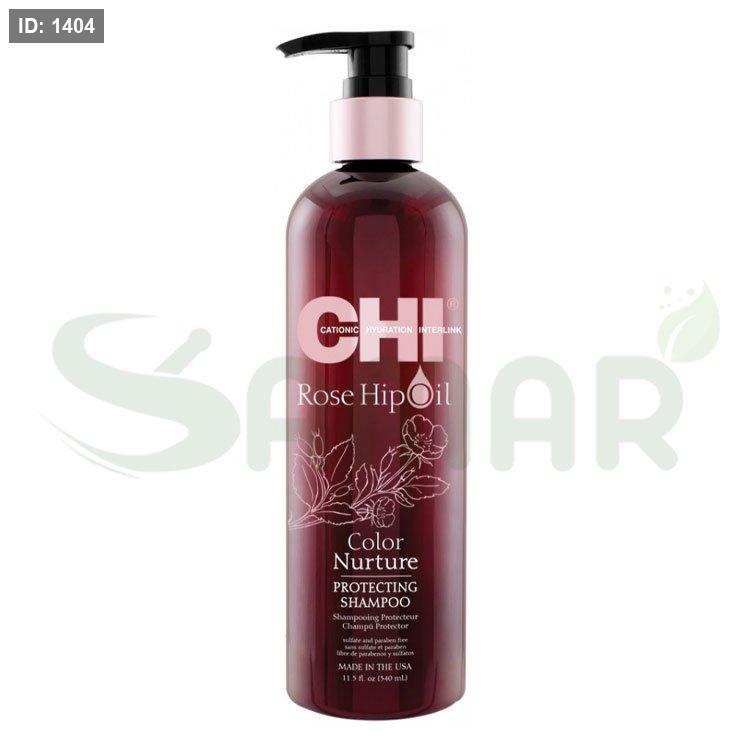 شامبو بزيت ثمر الورد، مصمم لحماية لون الشعر، ينظف بلطف ويغذي الشعر المصبوغ، مما يحافظ على لونه ولمعانه.