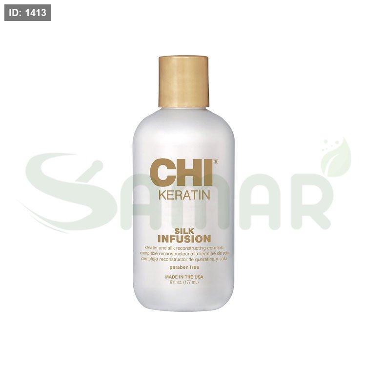 علاج حريري معزز بالكيراتين، يخترق الشعر لتقويته وتنعيمه، ويمنحه لمعانًا حريريًا.