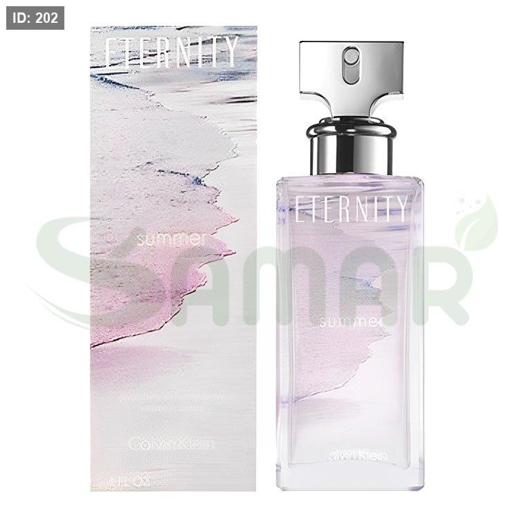عطر كالفن كلاين إترنيتي سمر للنساء يتميز بعبير منعش ومشرق يجسد أجواء الصيف. يفتتح العطر بنفحات خفيفة من البطيخ والكمثرى، مع قلب زهري رقيق من الفاوانيا وزهور المائية. تُختتم القاعدة بنغمات دافئة من العنبر والمسك، مما يمنحه طابعًا أنثويًا وهادئًا يناسب الأوقات المشمسة.