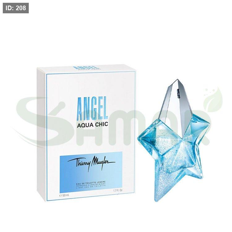عطر أنجل أكوا شيك للنساء يتميز بتركيبة منعشة وخفيفة تجسد الحيوية والتألق. يفتتح العطر بنفحات مشرقة من الليمون والزنجبيل، مع قلب زهري من الفريزيا وزهور الماء. تختتم القاعدة بنغمات ناعمة من الباتشولي والعنبر، مما يضفي طابعًا عصريًا وأنيقًا يناسب الأوقات الصيفية.