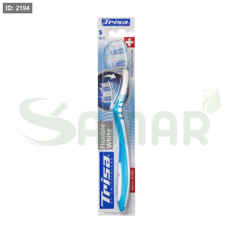 فرشاة أسنان مرنة مع شعيرات مبيضة للأسنان.