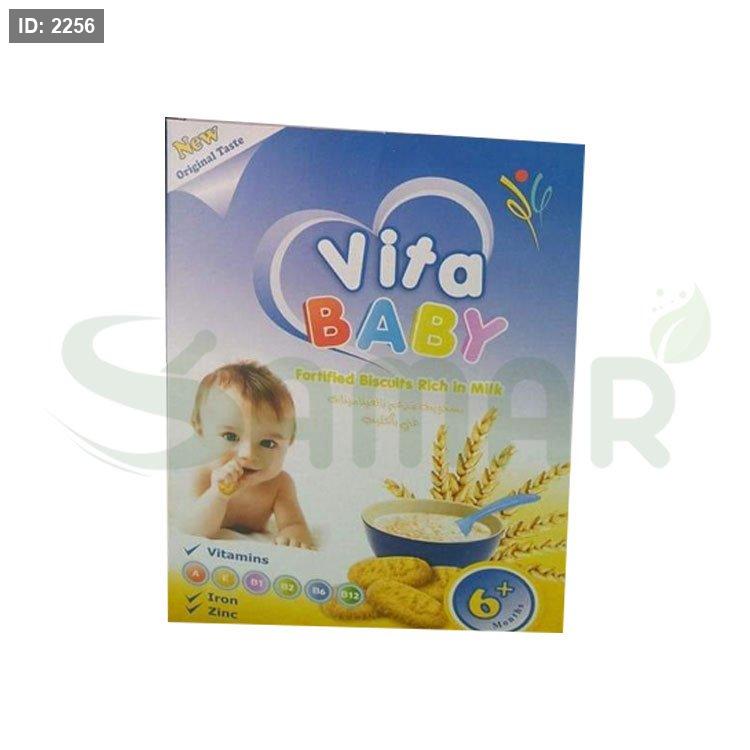 بسكويت Vita Baby، مخصص للأطفال، خفيف وسهل الهضم، مثالي كوجبة خفيفة مغذية للأطفال، يحتوي على مكونات طبيعية لدعم صحة الطفل وتوفير طاقة جيدة.