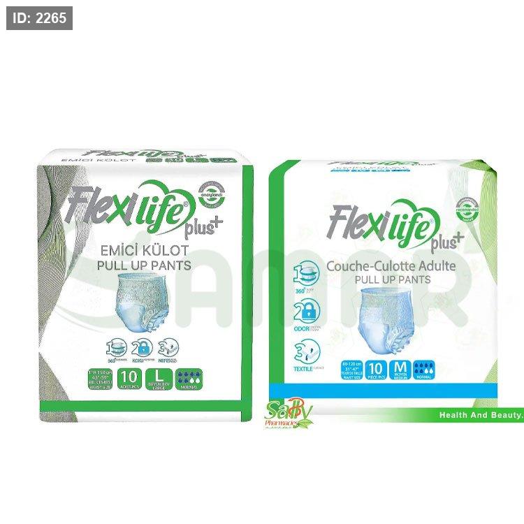 حفاضات فليكس لايف بلس بحجم L/M، عدد 10 قطع، مناسبة للاستخدام اليومي مع امتصاص جيد وحماية فعالة.