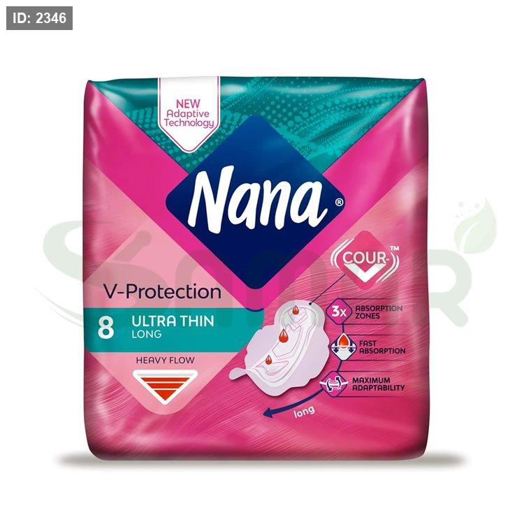 فوط نانا فائقة الامتصاص مع أجنحة بحجم طويل، عدد 8 قطع، لحماية إضافية.