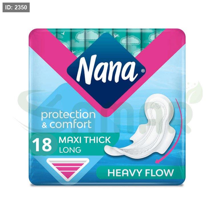 فوط نانا ماكسي السميكة الطويلة، عدد 18 قطعة، توفر راحة وأمانًا طوال اليوم.