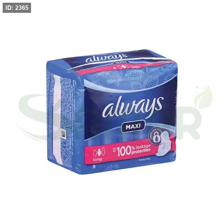 فوط نسائية ماكسي سوبر بحجم 9 قطع، توفر حماية وراحة طوال اليوم.