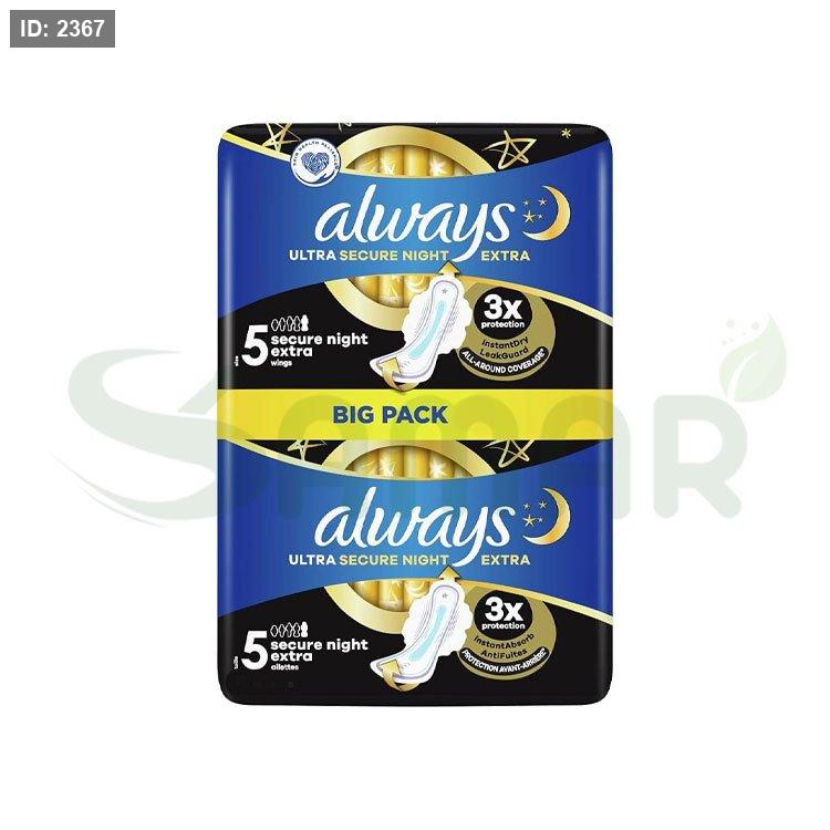 فوط ألترا الليلية بالحجم الكبير رقم 5، تحتوي على 12 قطعة لحماية فائقة أثناء النوم.