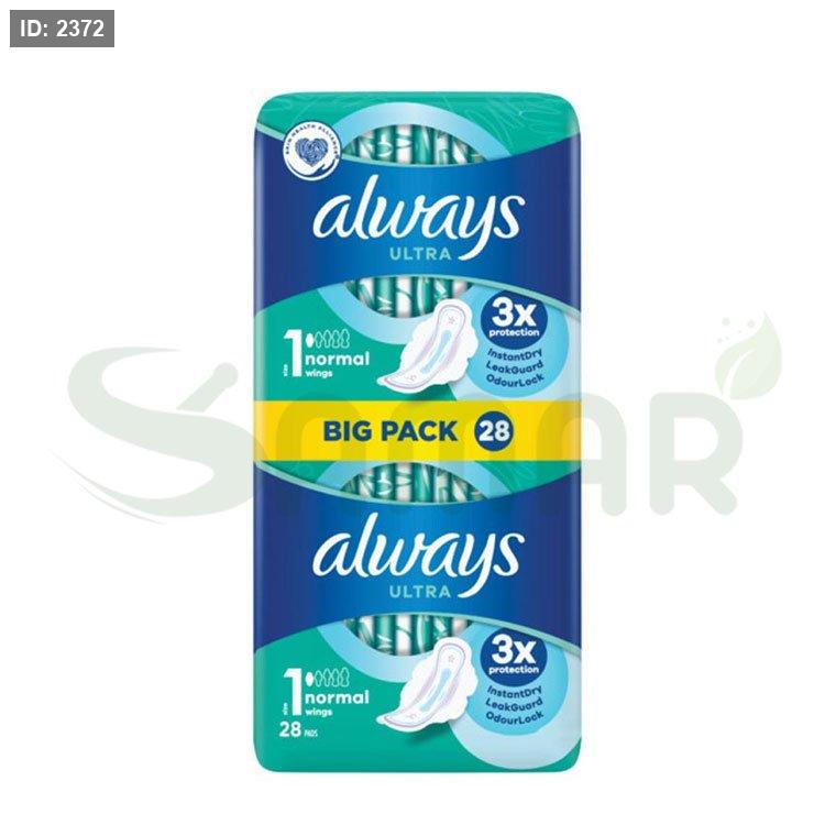 فوط ألترا العادية رقم 1، تحتوي على 24 قطعة، توفر حماية متوسطة إلى قوية.