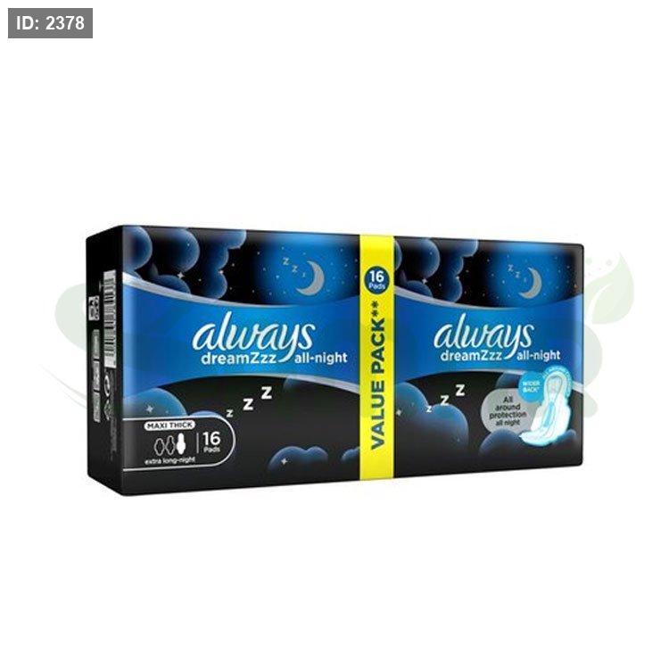 فوط ماكسي الليلية، 16 قطعة بحجم كبير، توفر حماية قوية أثناء النوم.
