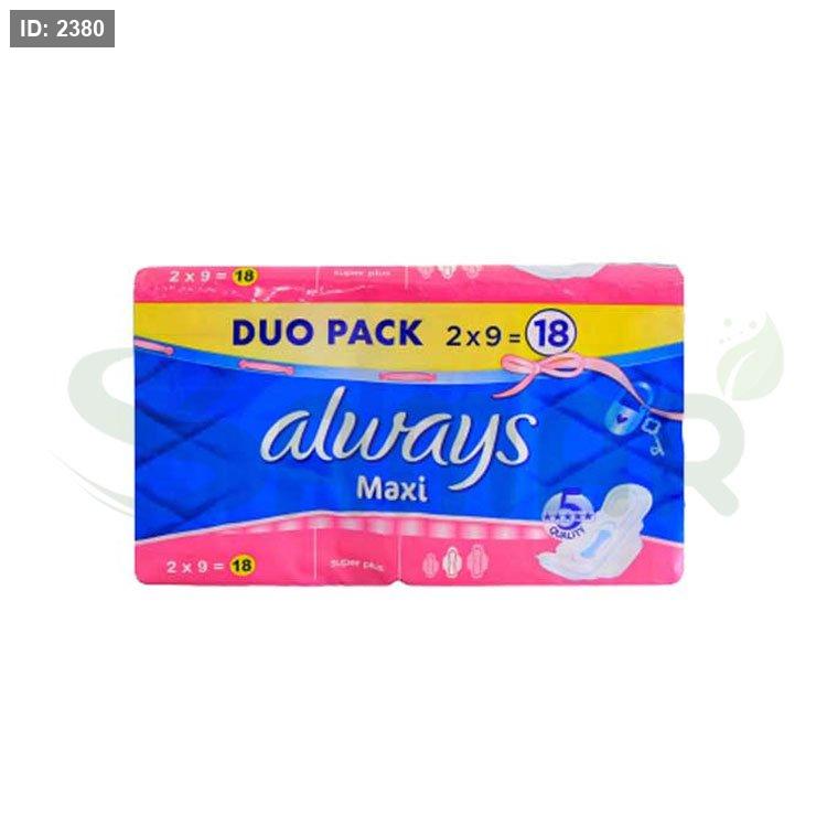 فوط ماكسي سوبر، تحتوي على 18 قطعة، تمنح راحة وحماية قوية طوال اليوم.