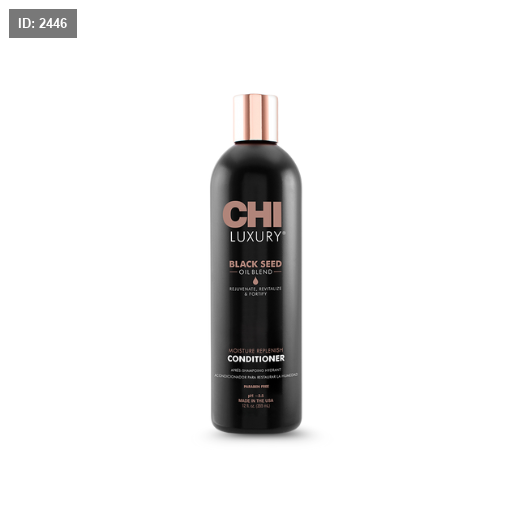 بلسم مكثف من CHI يُصمم لترطيب عميق وتعزيز نعومة ولمعان الشعر باستخدام زيت الحبة السوداء (حبة البركة)، في عبوة 355 مل