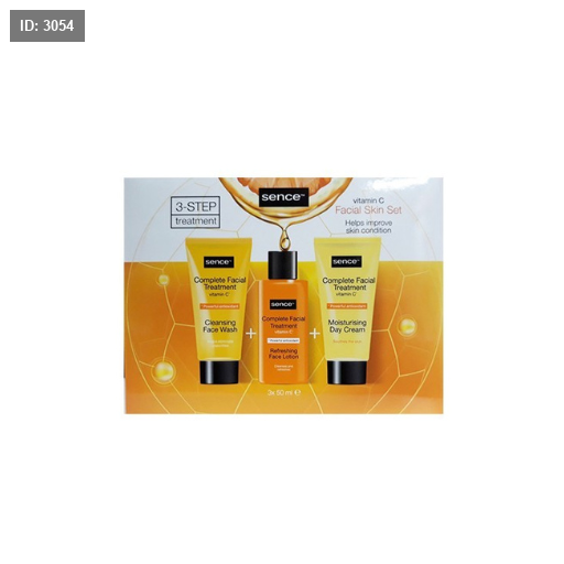 مجموعة عناية بالبشرة تحتوي على ثلاثة منتجات أساسية مدعمة بفيتامين C، مصممة لتفتيح البشرة، ترطيبها، وتقليل ظهور علامات التقدم في السن.