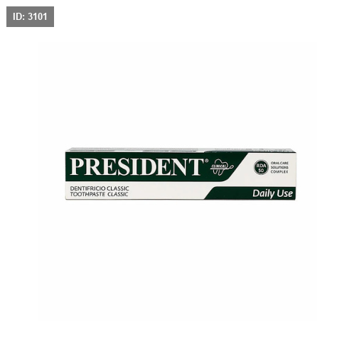 معجون الأسنان PRESIDENT Classic يمنحك عناية يومية فائقة للحفاظ على صحة الفم والأسنان. تركيبته المتوازنة تعمل على تنظيف الأسنان بفعالية، منع تراكم البلاك، وتعزيز صحة اللثة، مع نكهة منعشة تدوم طويلاً.