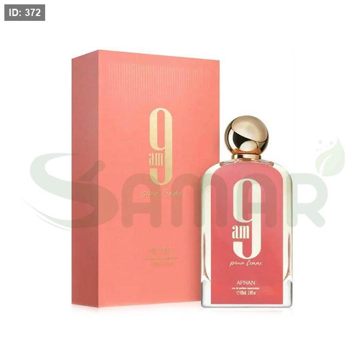 عطر **9AM بور فيم من أفنان 100 مل** هو عطر زهري فاكهي ناعم ومشرق. يفتتح بنفحات من الفواكه الطازجة مثل الليمون والتوت الأحمر، مع قلب غني من الياسمين والماغنوليا، وتنتهي القاعدة بنعومة خشب الصندل والمسك. عطر يعكس الأنوثة العصرية والمشرقة بأسلوب جذاب ومرهف.