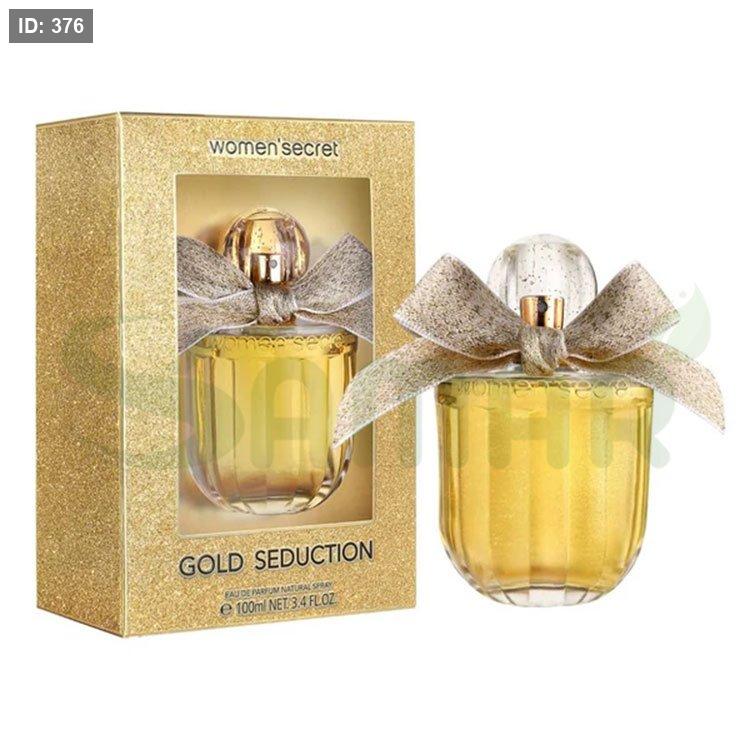 عطر **جولد سيدكشن من وومن سيكرت أو دي بارفان 100 مل** هو عطر شرقي زهري فاخر ودافئ. يفتتح بنفحات من الفواكه الحلوة مثل التوت الأحمر والبرغموت، مع قلب غني من الورد والفانيليا، وتنتهي القاعدة بنعومة خشب الصندل والمسك. عطر يعكس الأنوثة الجذابة والراقية بأسلوب مغري وفاخر.