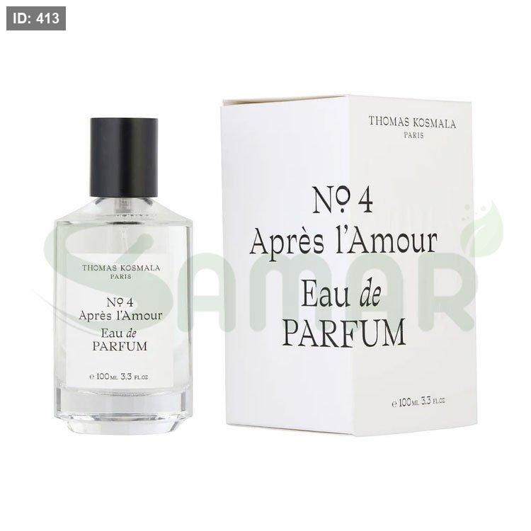 عطر **توماس كوسمالا رقم 4 "أبريس لامور" أو دي بارفان 100 مل** هو عطر فاخر يناسب كلا الجنسين. يتميز بتوليفة فريدة تجمع بين الرقة والدفء، حيث يفتتح بنفحات زهرية منعشة من الورد والياسمين، مع لمسات خفيفة من الحمضيات. قلب العطر يحتوي على لمسات خشبية ناعمة مع اللافندر والتوابل الخفيفة، في حين تنتهي القاعدة بمزيج دافئ من المسك والفانيليا. عطر يعكس الأناقة والهدوء بأسلوب عصري ومتوازن، مثالي للأوقات الرومانسية أو المسائية.