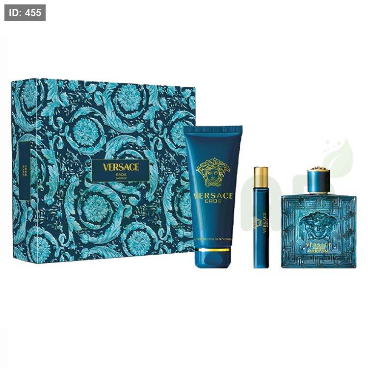 مجموعة فيرساتشي "إيروس" بارفام - 3 قطع , عطر رجالي قوي وجذاب، يجسد العاطفة والحب مع لمسات من الفخامة والتميز. يبدأ العطر بنفحات منعشة من الليمون الأخضر، التفاح الأخضر، والنعناع، مما يخلق بداية حيوية ومنعشة. ثم ينتقل إلى قلب غني بالأزهار مع الورد البلغاري والماغنوليا، مما يضيف لمسة أنثوية ودافئة. القاعدة دافئة وقوية، مع مزيج من الفانيلا، المسك، وخشب الأرز، مما يترك أثراً مغريًا يدوم طويلاً.