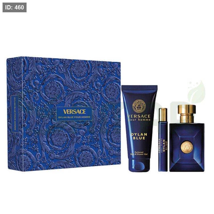 مجموعة فيرساتشي "ديلان بلو بور هوم" - ماء تواليت 3 قطع ,عطر ذكوري عصري يجمع بين الانتعاش والفخامة، ويعكس شخصية الرجل القوي والواثق.يبدأ العطر بنفحات حيوية من البرغموت، الليمون، والتفاح الأخضر، مما يضفي بداية منعشة ومشرقة. في القلب، يتناغم مع روائح البحر، أوراق التين، والمريمية، مما يضيف لمسة من الانتعاش والنضارة. القاعدة غنية بمكونات دافئة من خشب الأرز، المسك، والعنبر، مما يترك أثراً ذكوريًا وجذابًا يدوم طويلاً.
